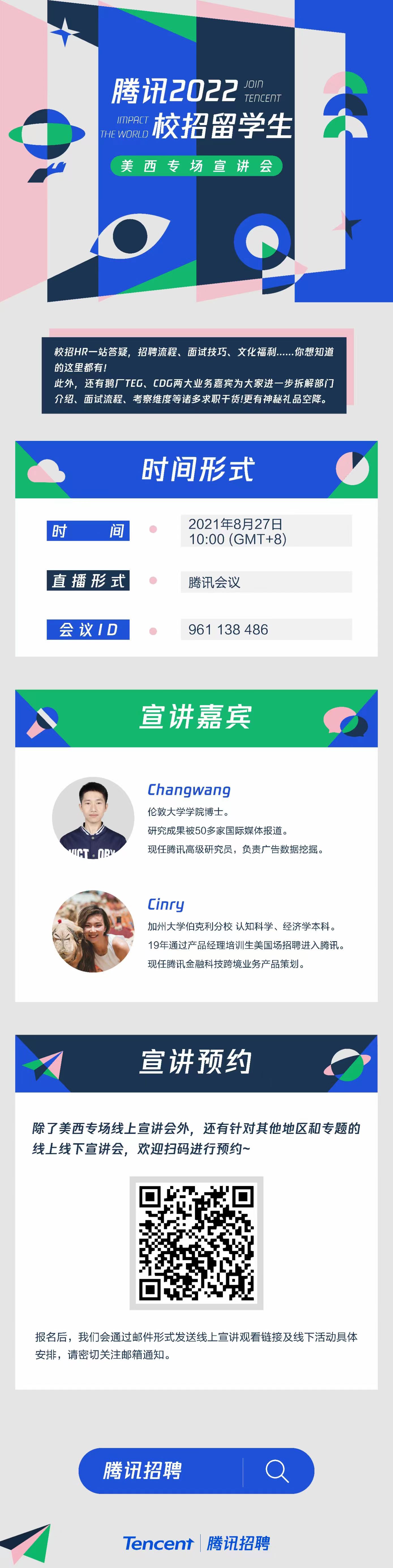 - C Zhang. Tencent Campus Recruitment Talk - Universities in the Western US Region. Universities in the Western US Region, 2021. (pdf poster)